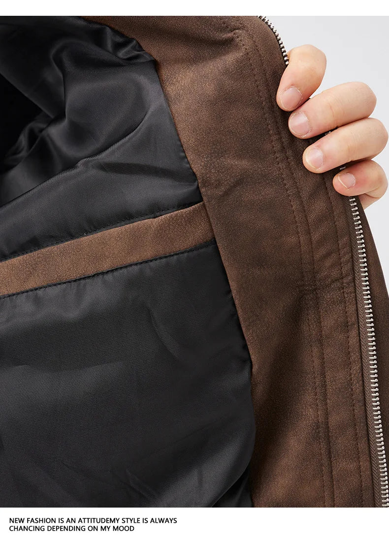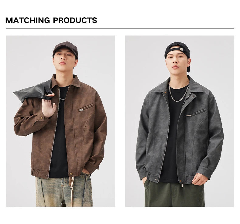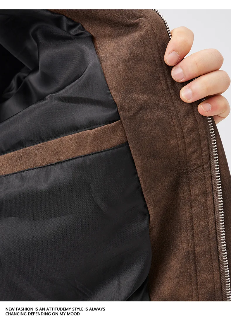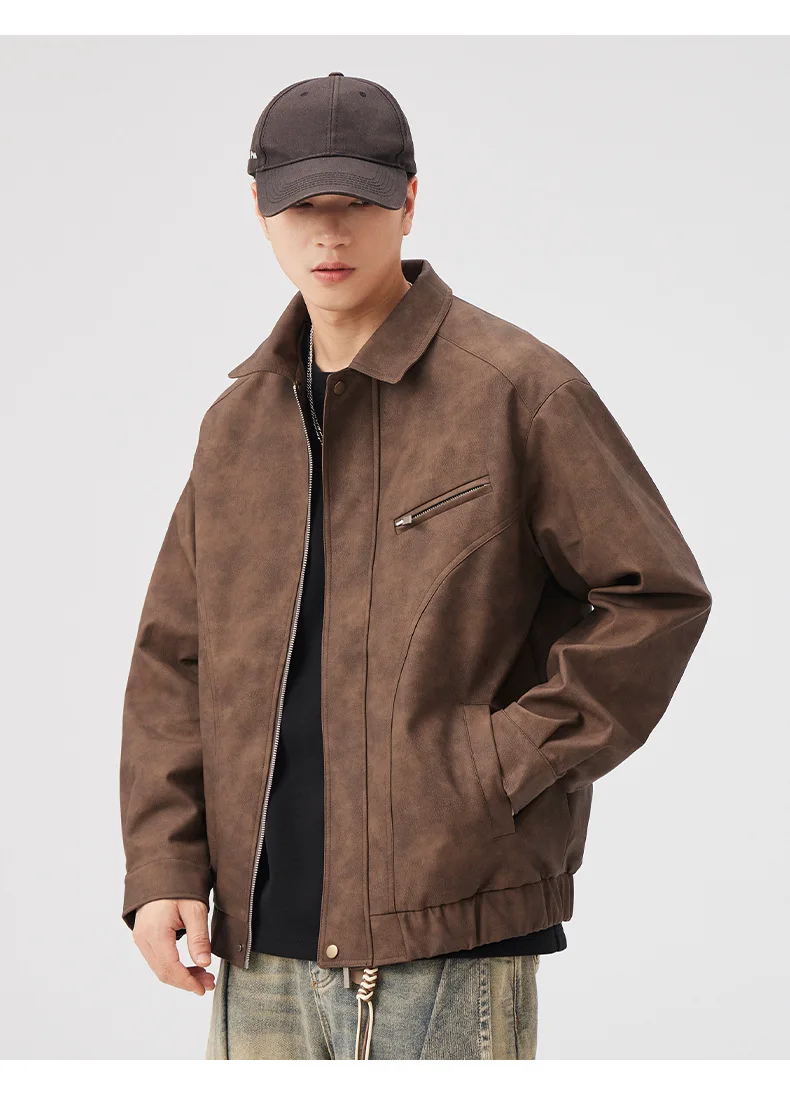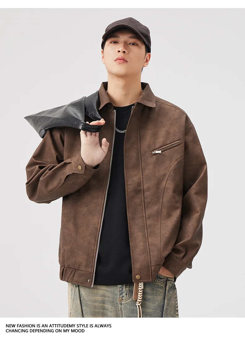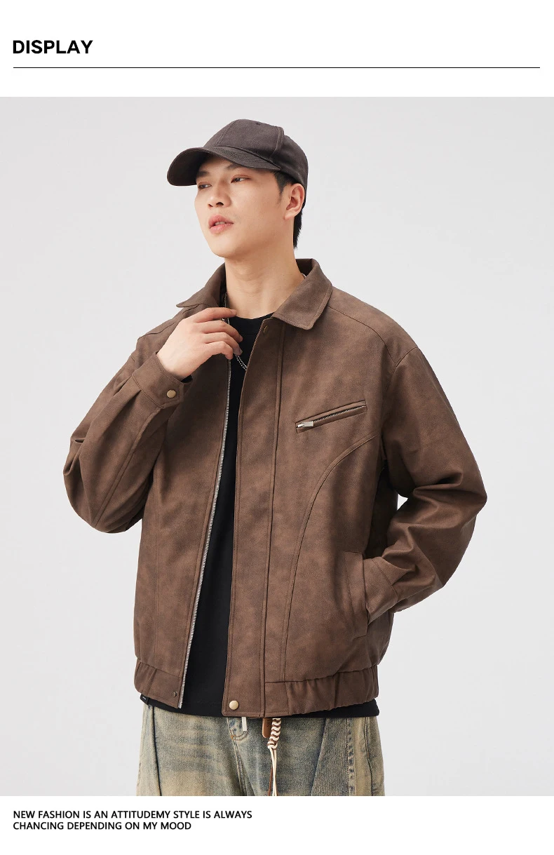 Fashion Men's American Workwear High-end PU Leather Jacket 2025 Spring and Autumn New Maillard Suede Men's Jacket