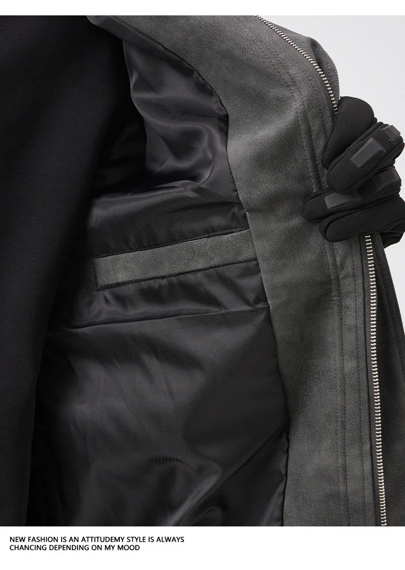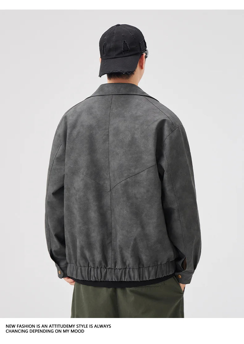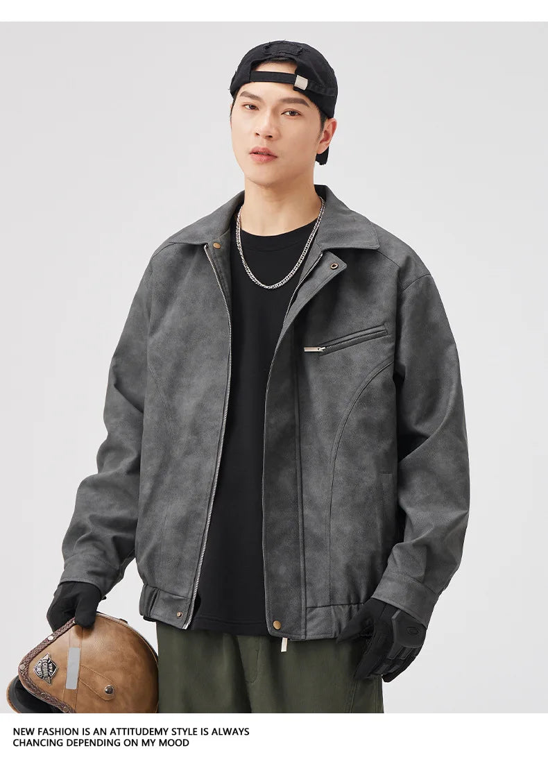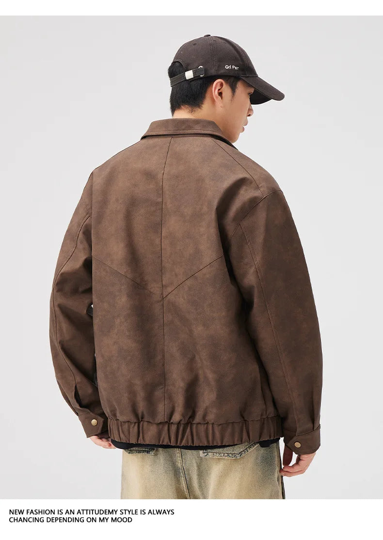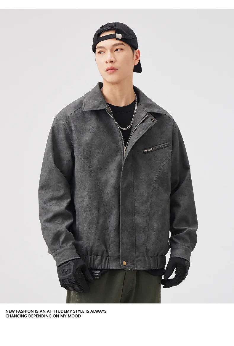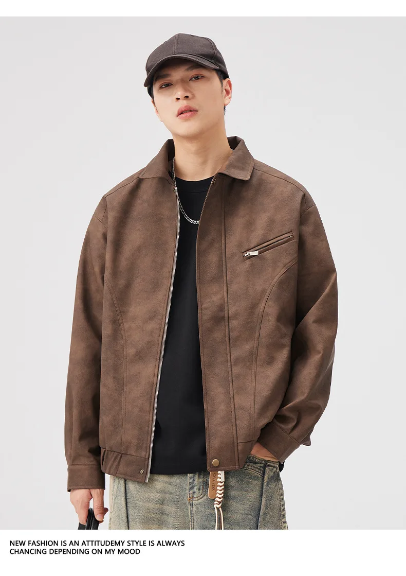 Fashion Men's American Workwear High-end PU Leather Jacket 2025 Spring and Autumn New Maillard Suede Men's Jacket