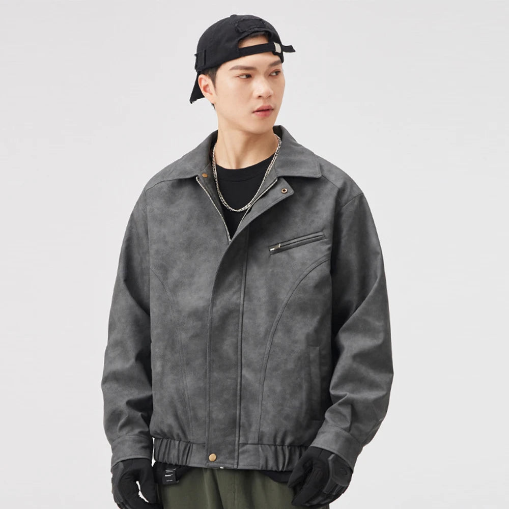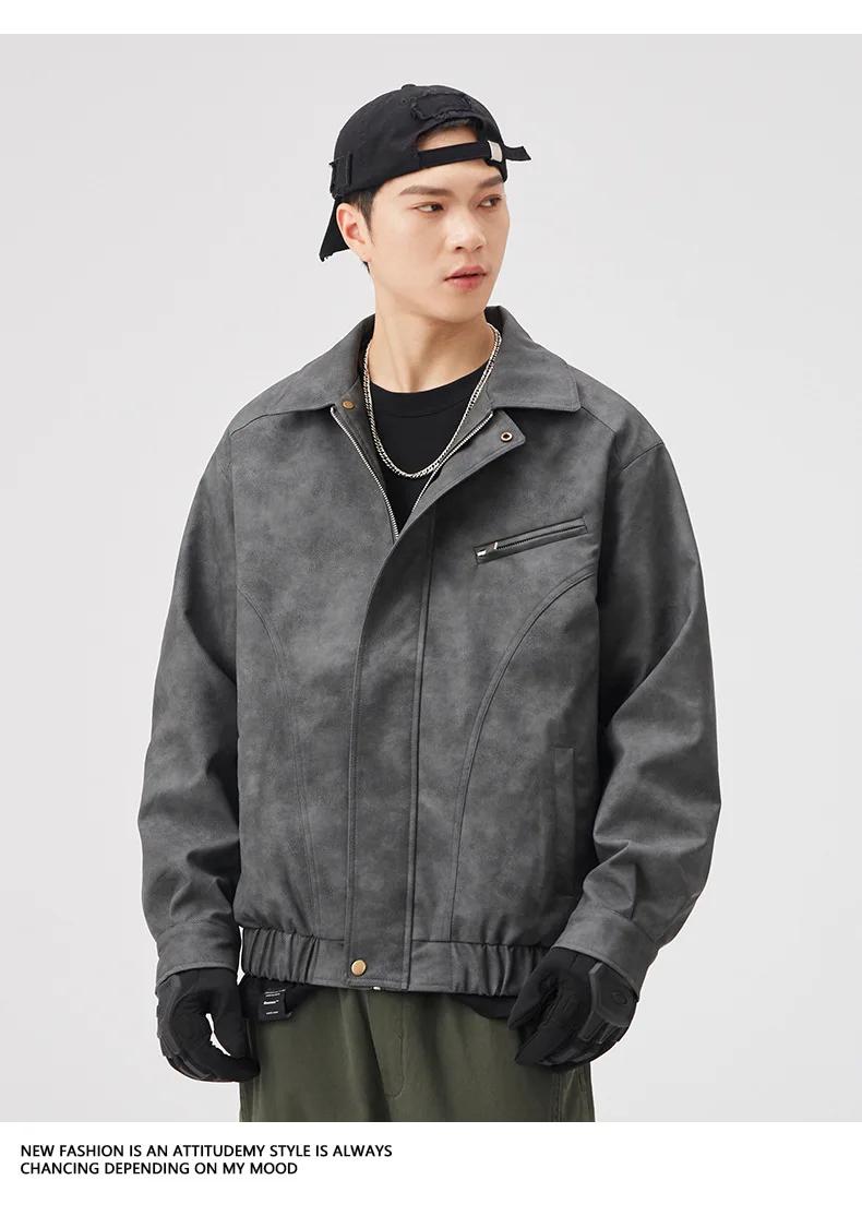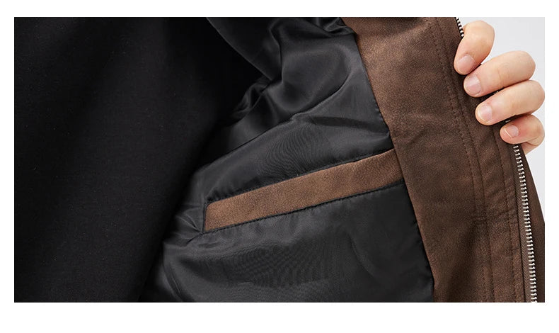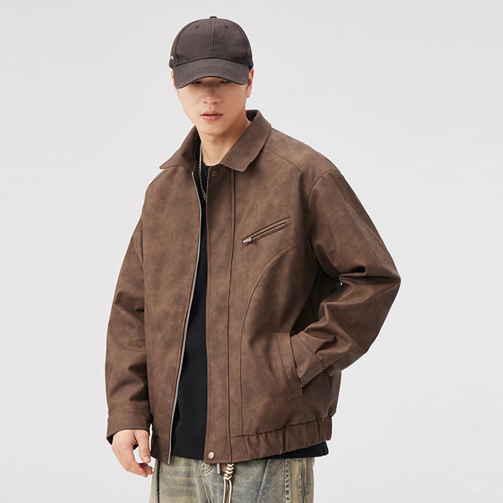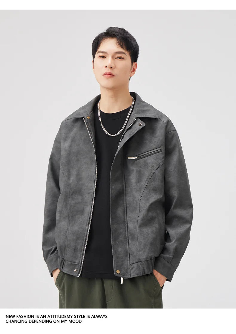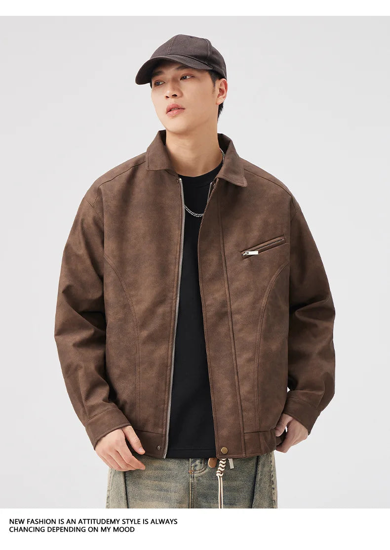 Fashion Men's American Workwear High-end PU Leather Jacket 2025 Spring and Autumn New Maillard Suede Men's Jacket