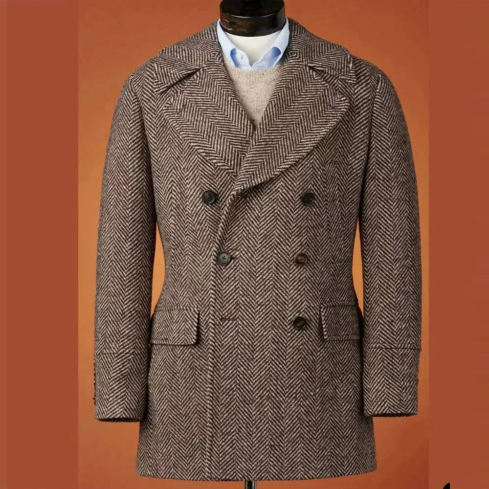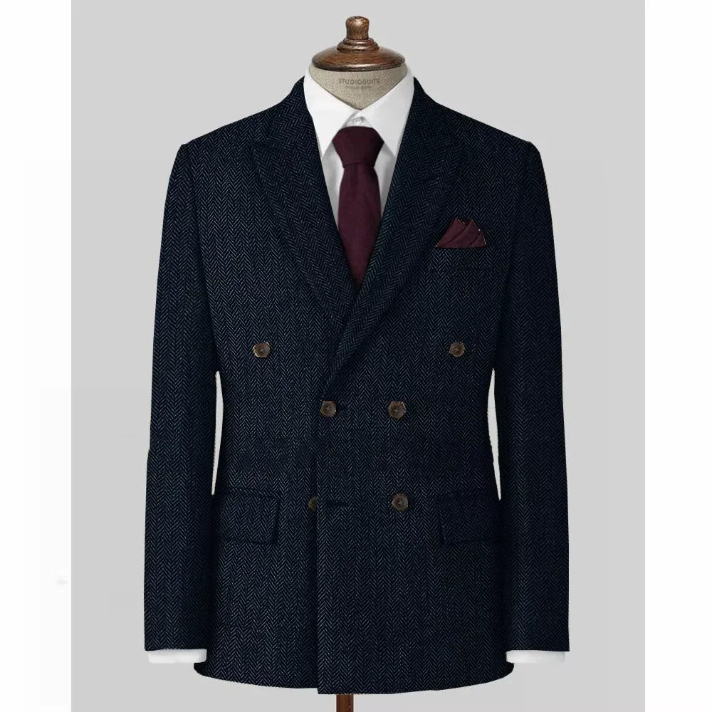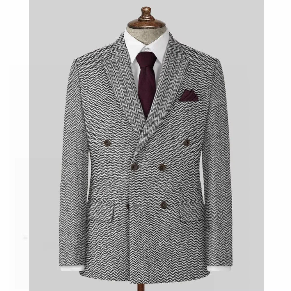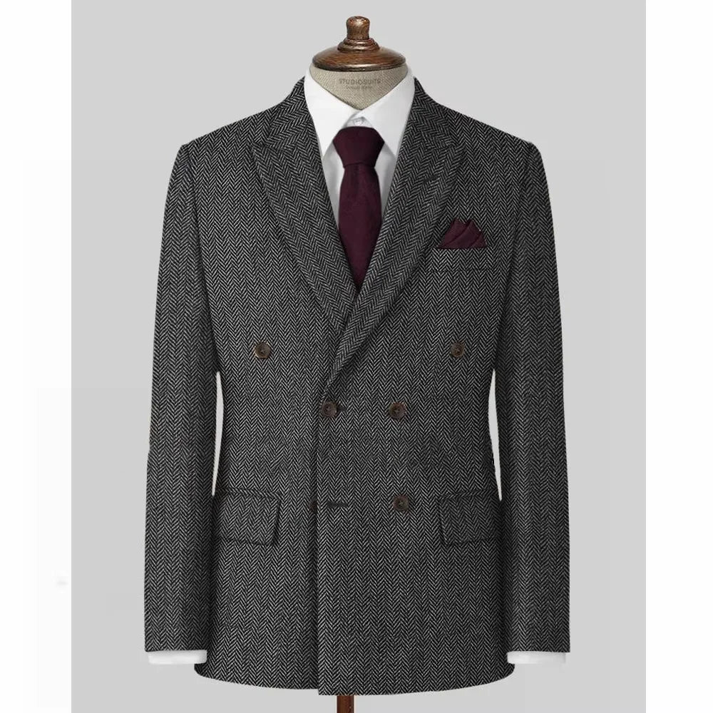 The herringbone pattern adds a classic touch to this blazer, making it a timeless addition to any outfit.