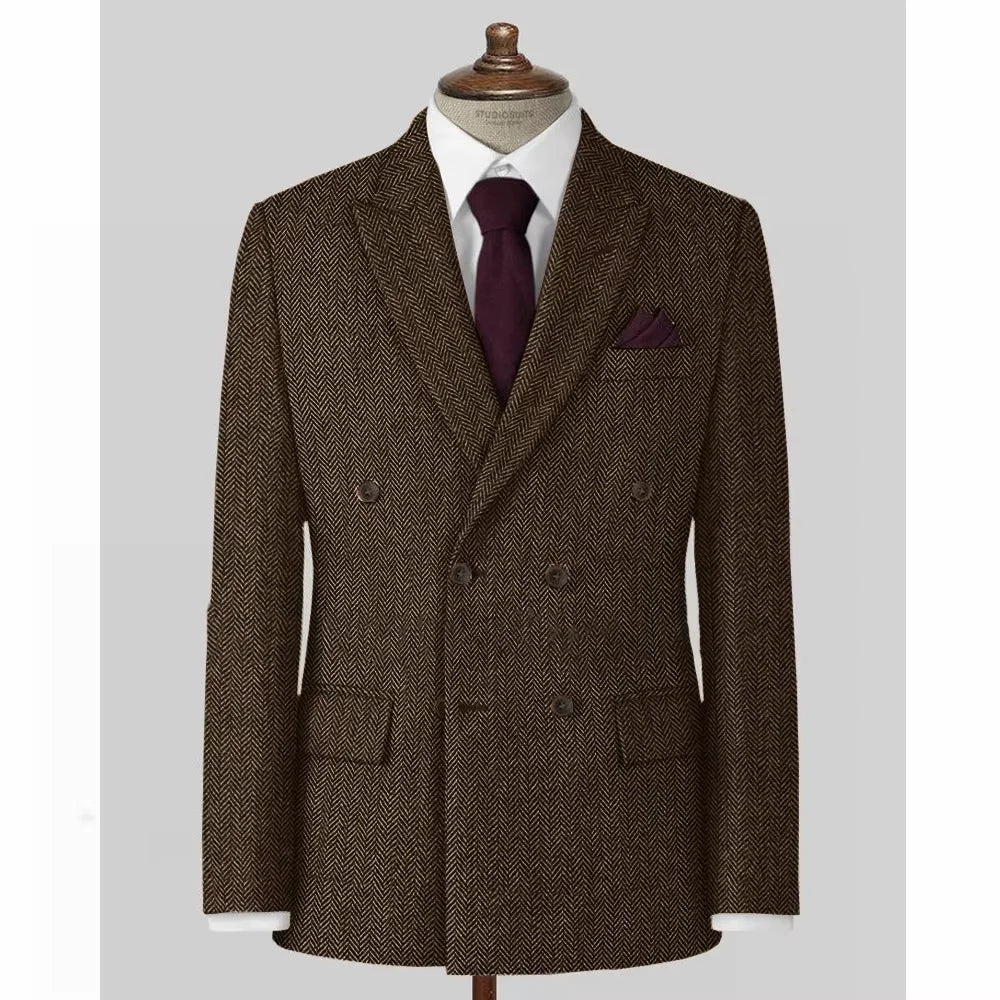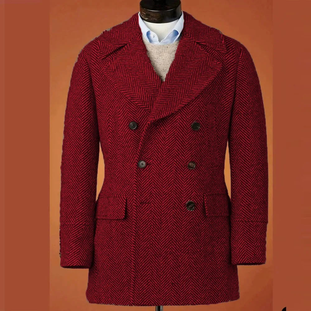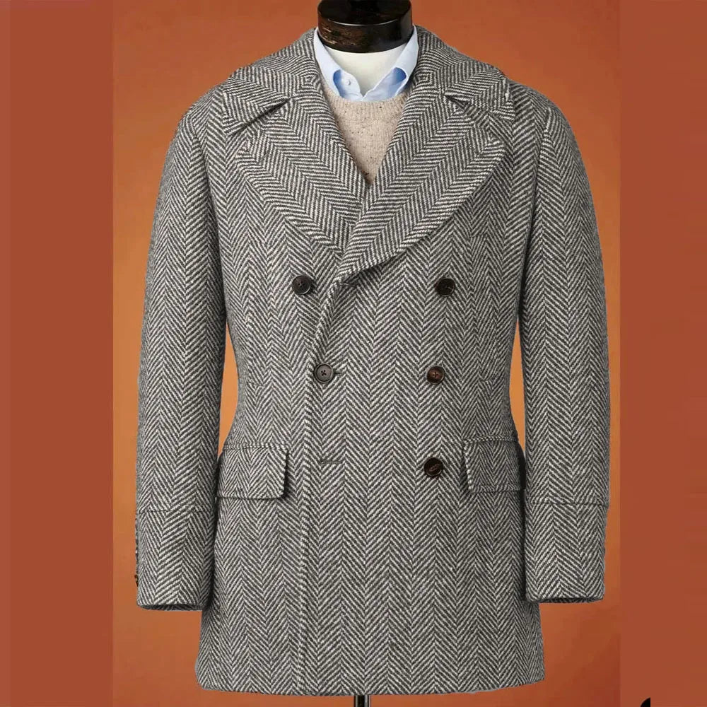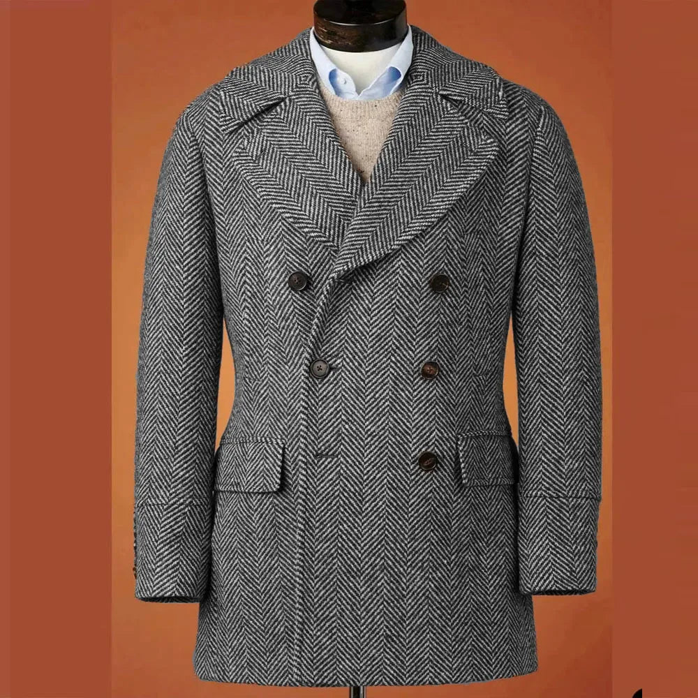 The herringbone pattern adds a classic touch to this blazer, making it a timeless addition to any outfit.