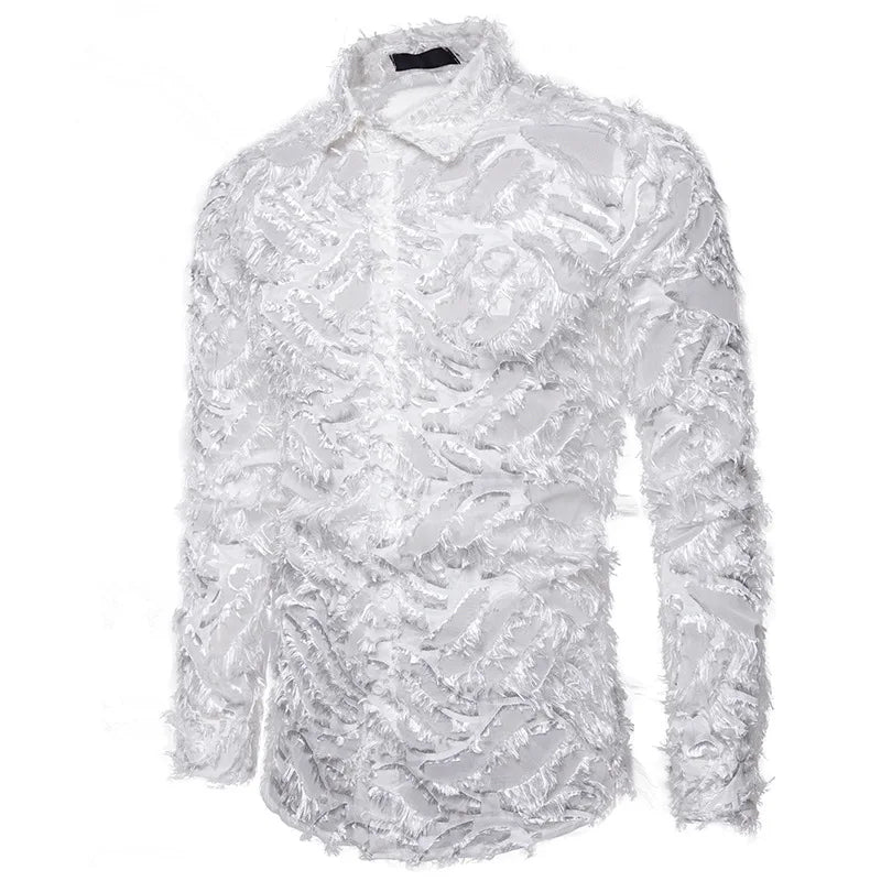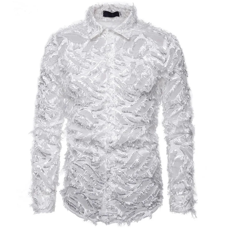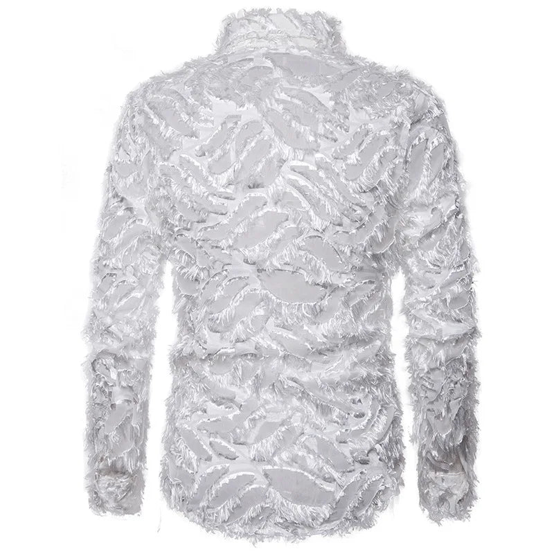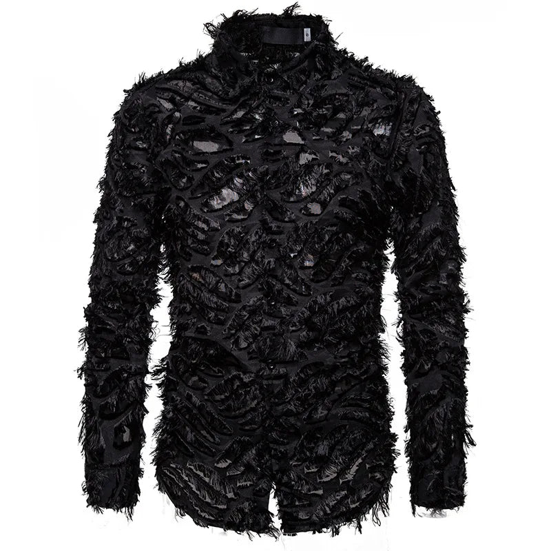 Sexy Black Shirt Men Fashion Feather Long Sleeve Mens Dress Shirts Nightclub Party Prom Social Shirt Male Camisa Hombre