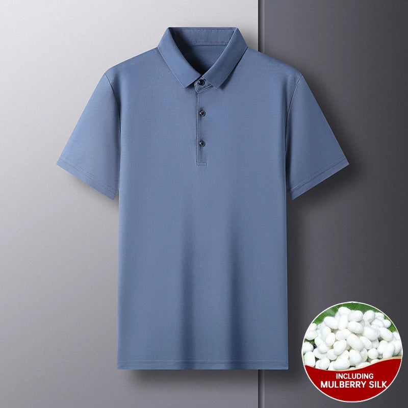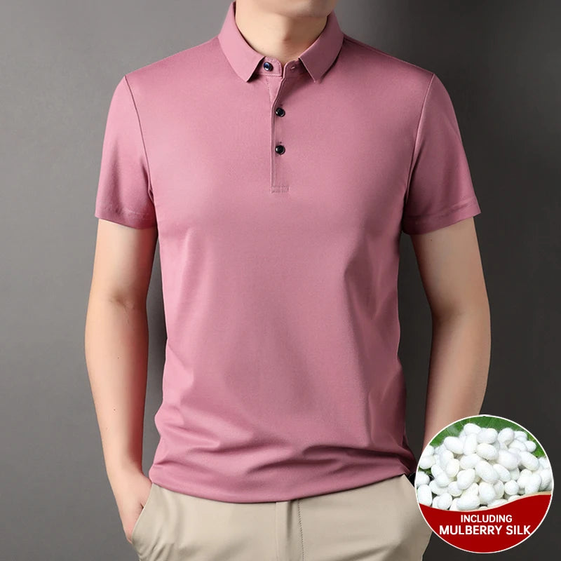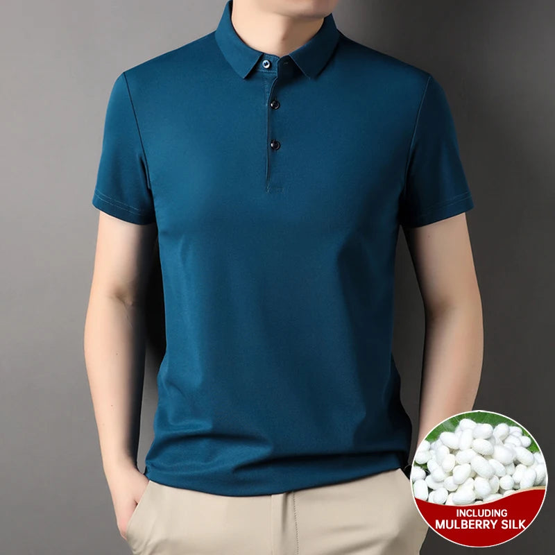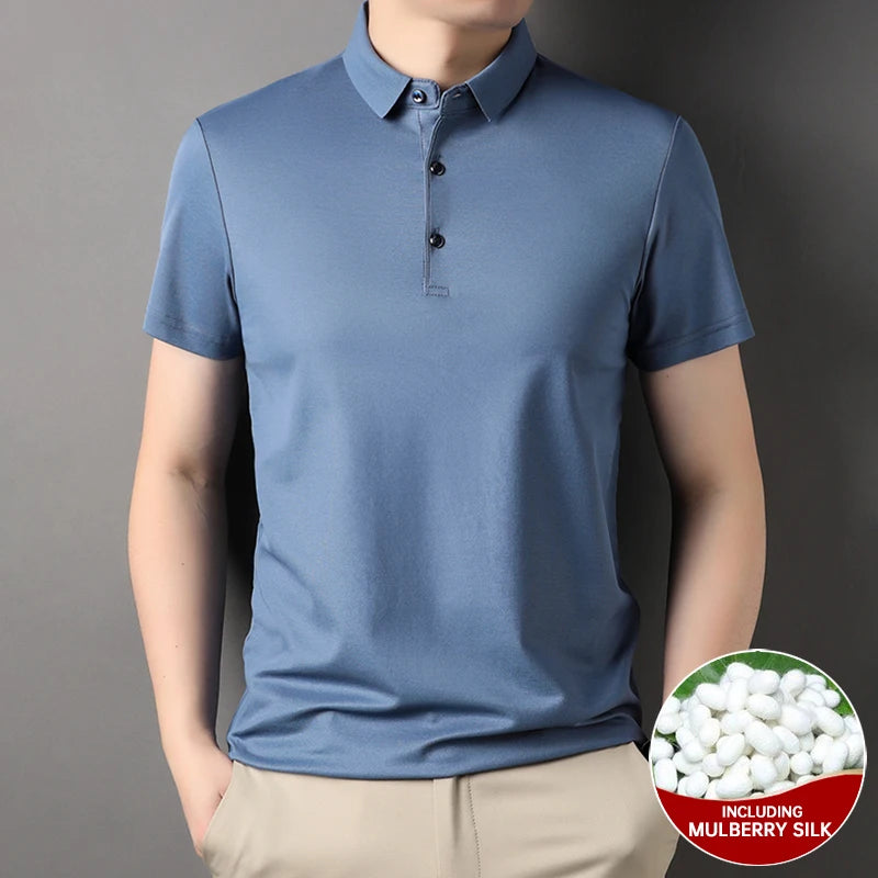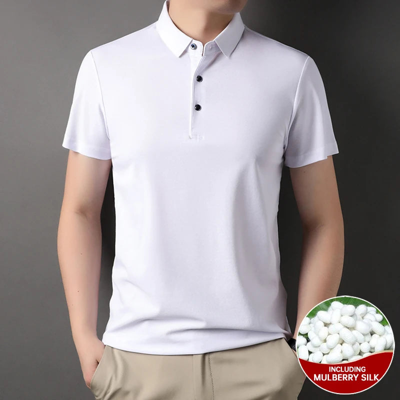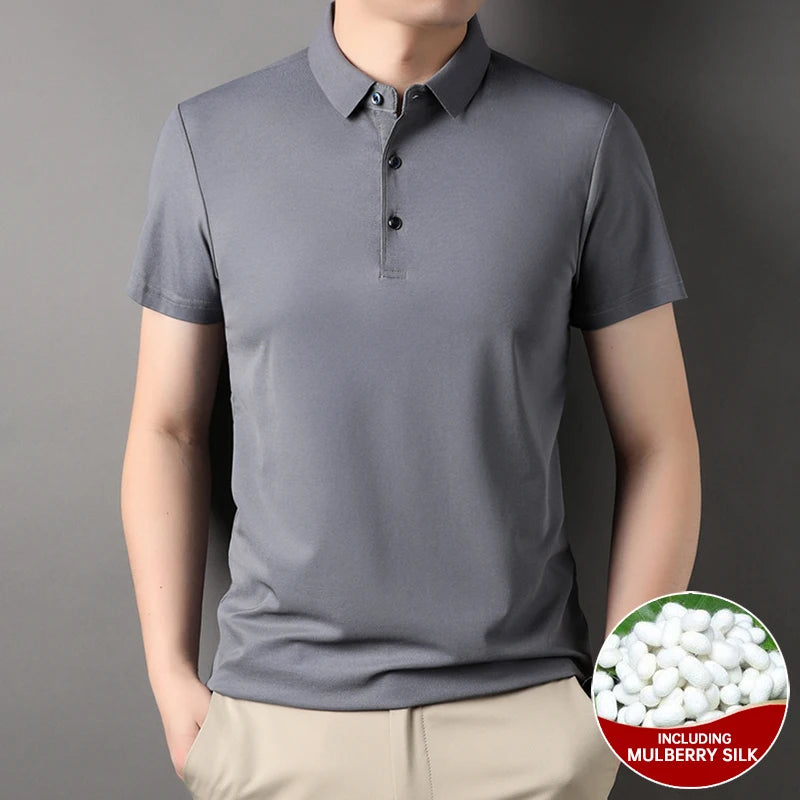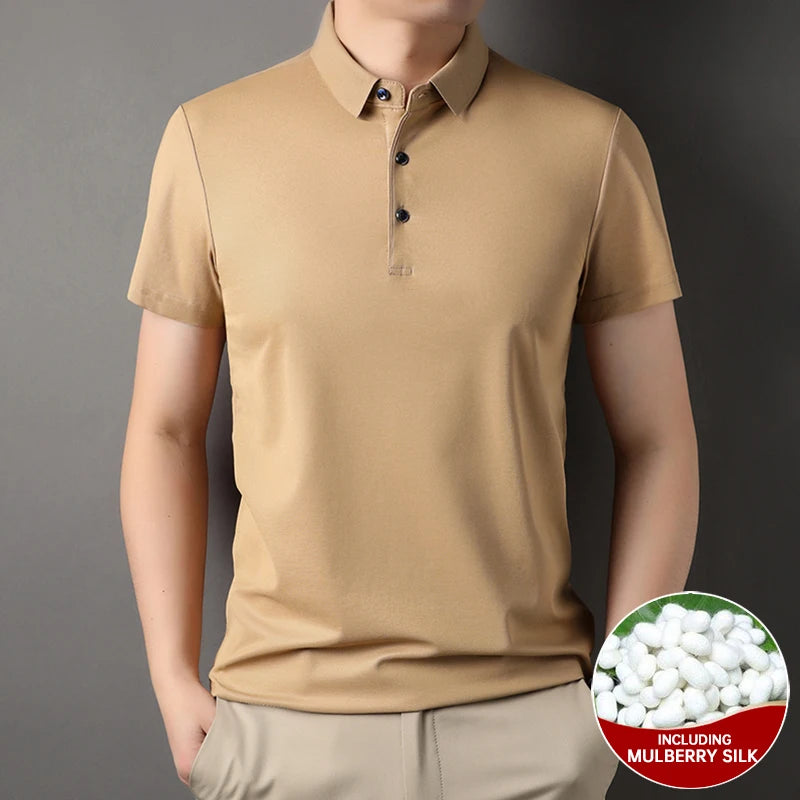 Top Grade 4.7% Mulberry Silk New Summer Brand Luxury Brand Polo Men Shirt Short Sleeve Plain Casual Tops Fashions Men Clothes